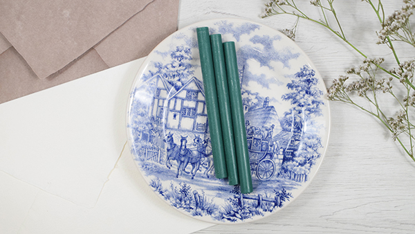 Barra de lacre flexible de color verde. Es ideal para utilizar un sello de lacre en las invitaciones de boda, los saquitos de arroz, los detalles de los invitados o cualquier otro lugar que se te ocurra, lo importante es que lo pongas donde lo pongas dará una sensación de que cuidas hasta el más mínimo detalle.