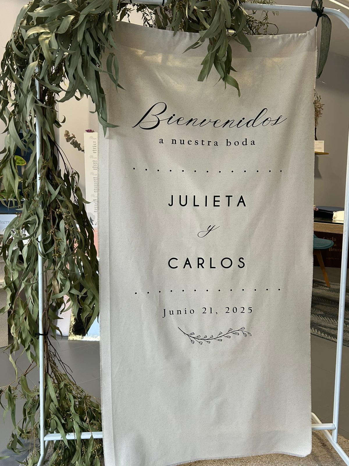 Cartel de bienvenida tela clasico