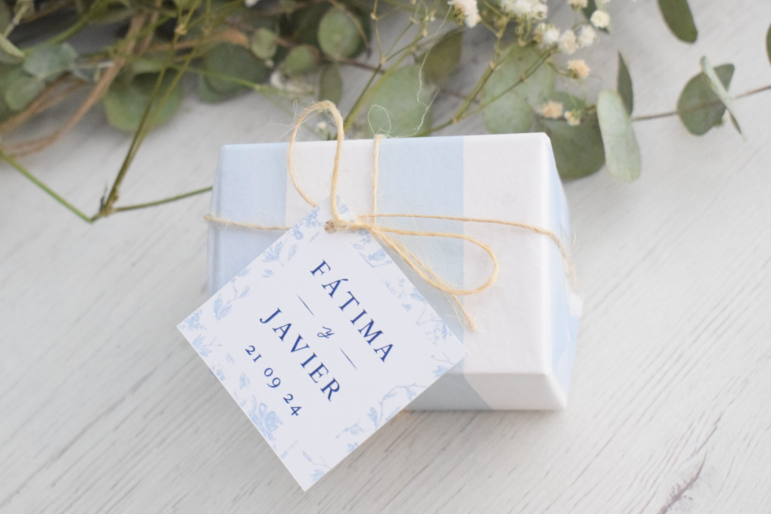 Todas las etiquetas se entregan con agujerito en la parte superior para que las puedas atar con una cuerda o un lazo.