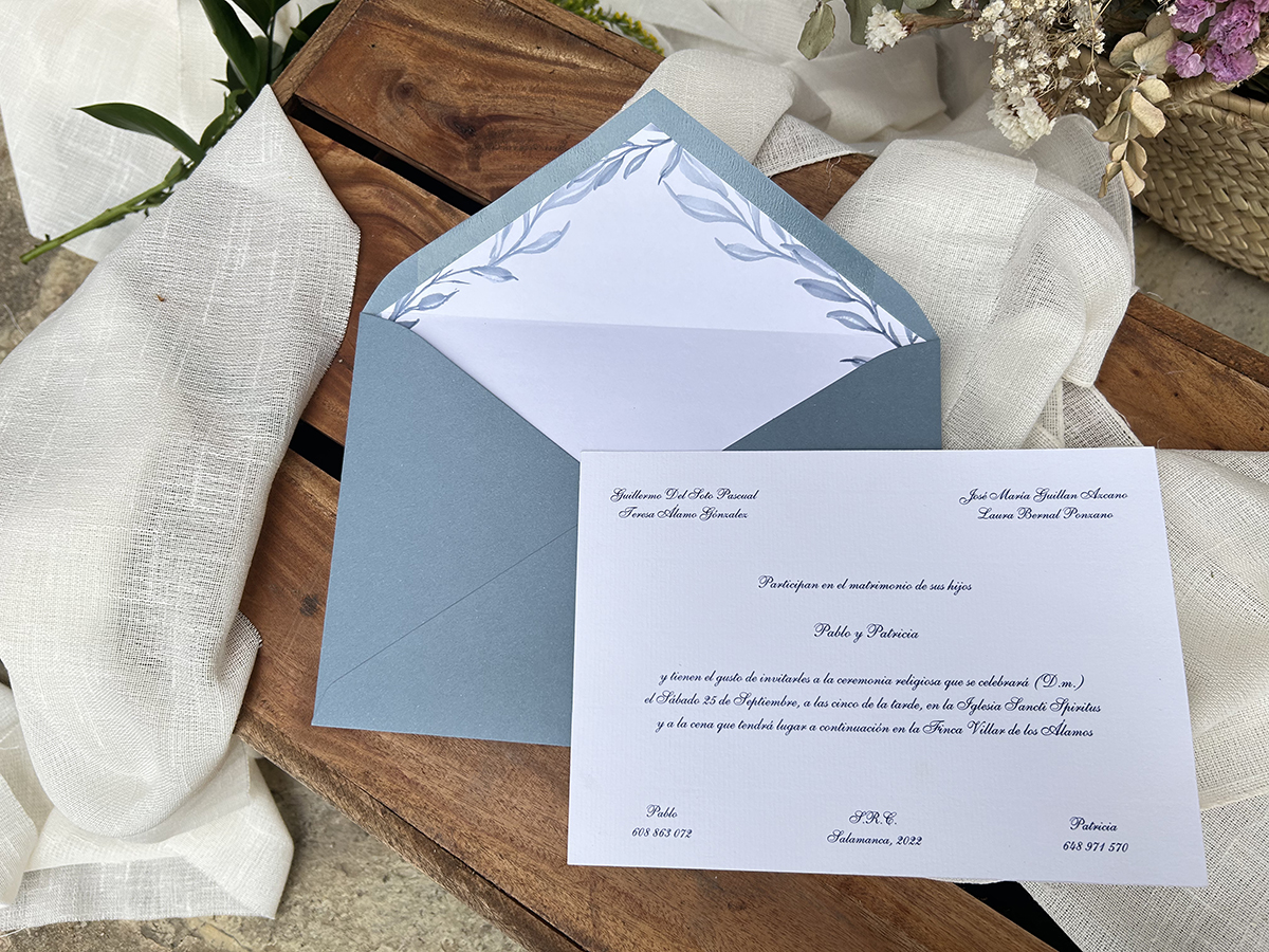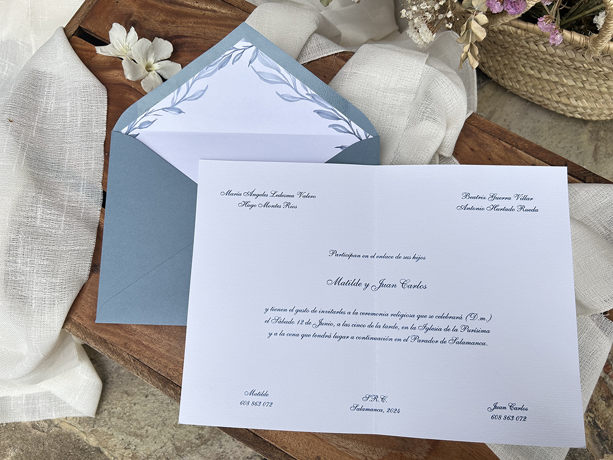 El precio incluye el tarjetón, el sobre liso o texturado y el montaje de las invitaciones.
