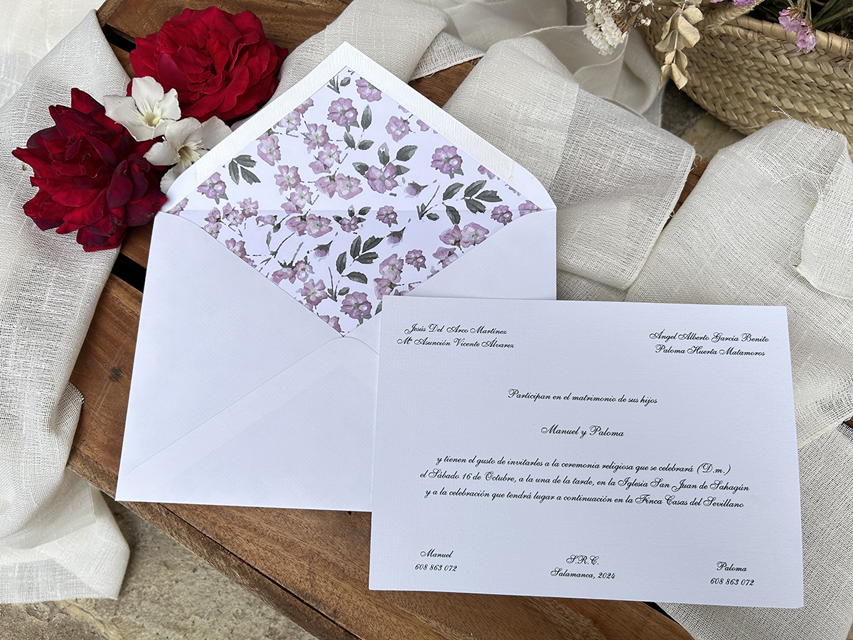 Las invitaciones clásicas nunca han pasado de moda, normal, con ellas siempre se acierta! Los mayores cuando las abren dicen: fíjate la de años que han pasado y yo me casé con unas igual, pero entonces no había estos sobres, ni se lacraban, ni estaban así de bonitas…. Y a los más jóvenes nos entra ese gusanillo de saber que tenemos en nuestras manos algo importante, que toca arreglarse más y estar a la altura del que será un fiestón!