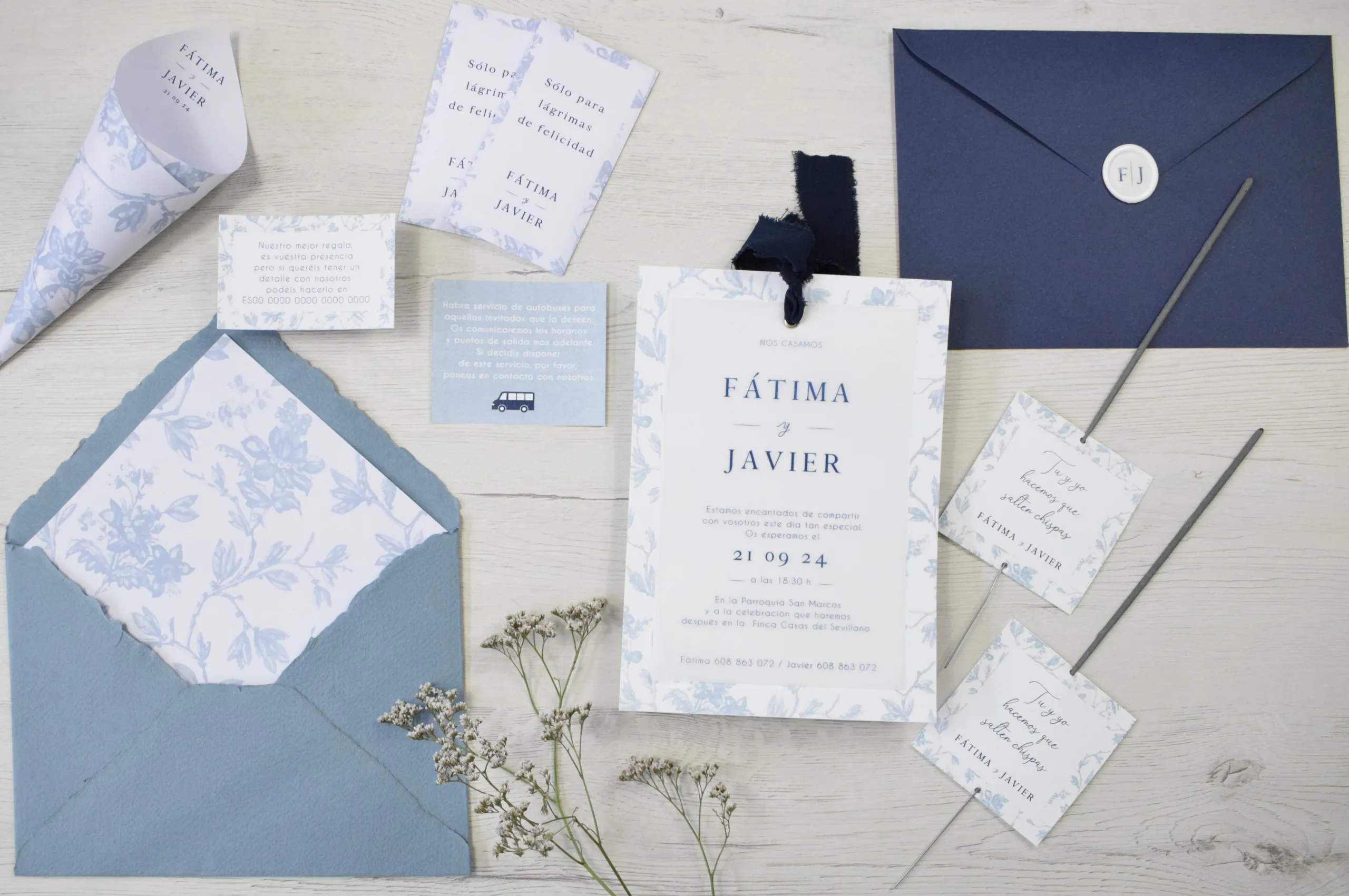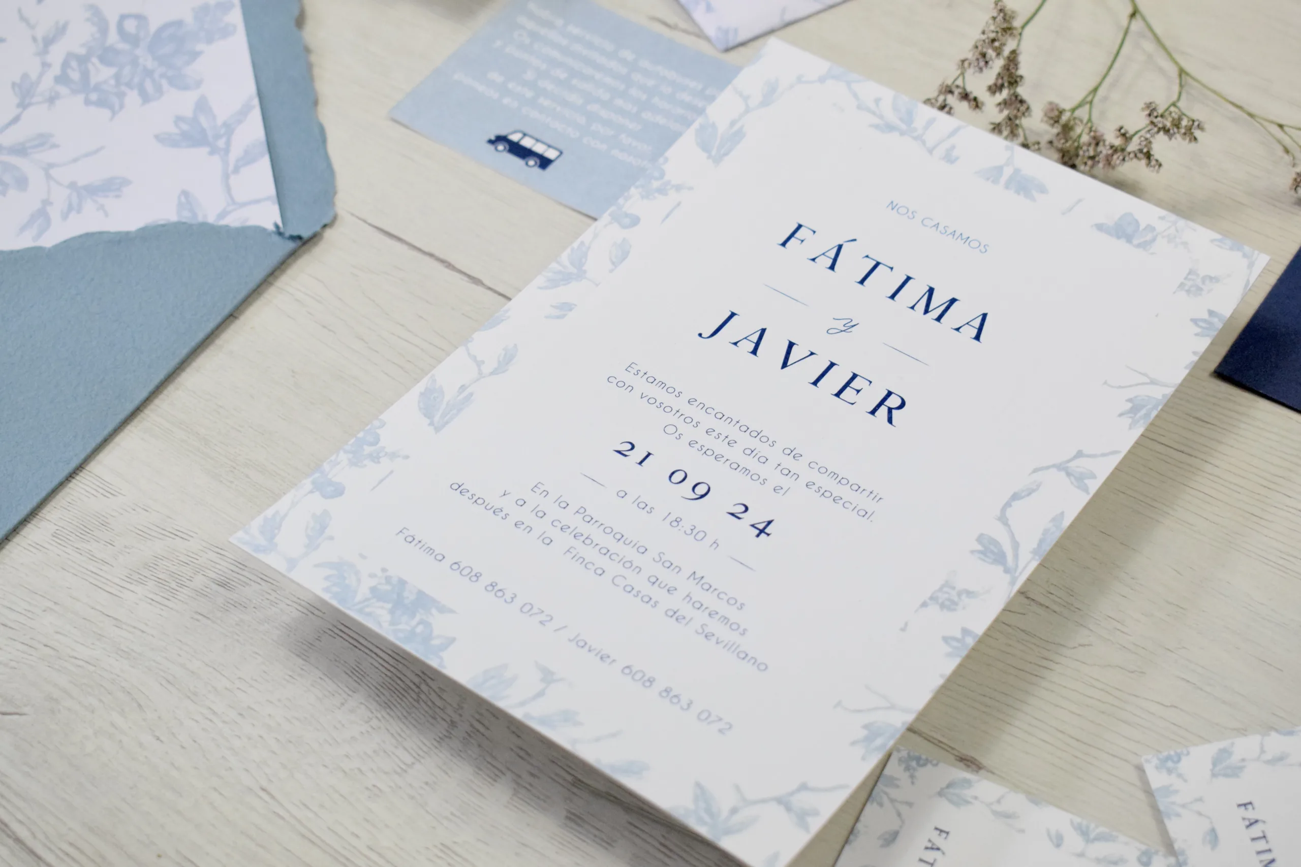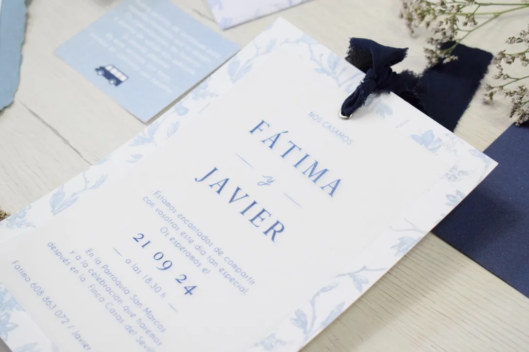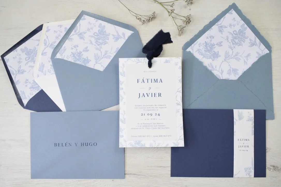 El precio incluye el tarjetón, el sobre liso o texturado y el montaje de las invitaciones.