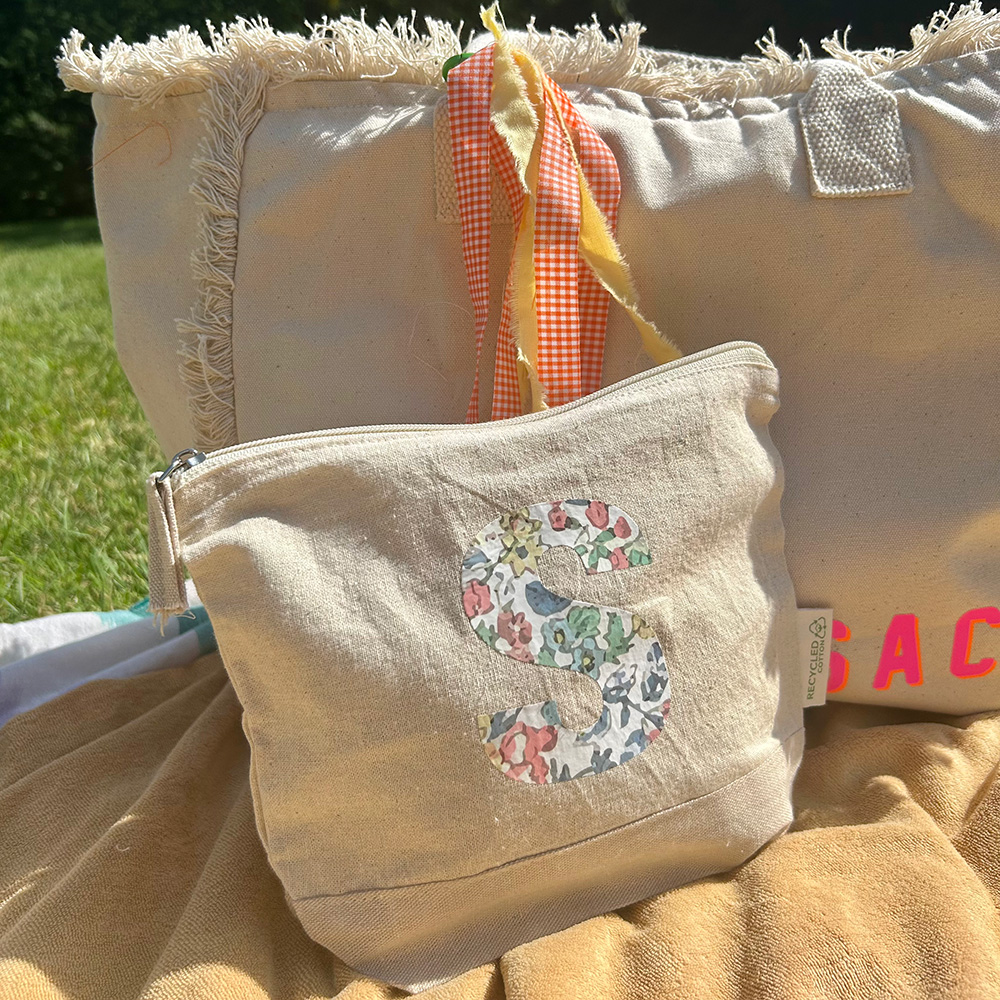 El neceser se personaliza con la inicial del nombre que nos digas con un estampado floral en tonos verdes